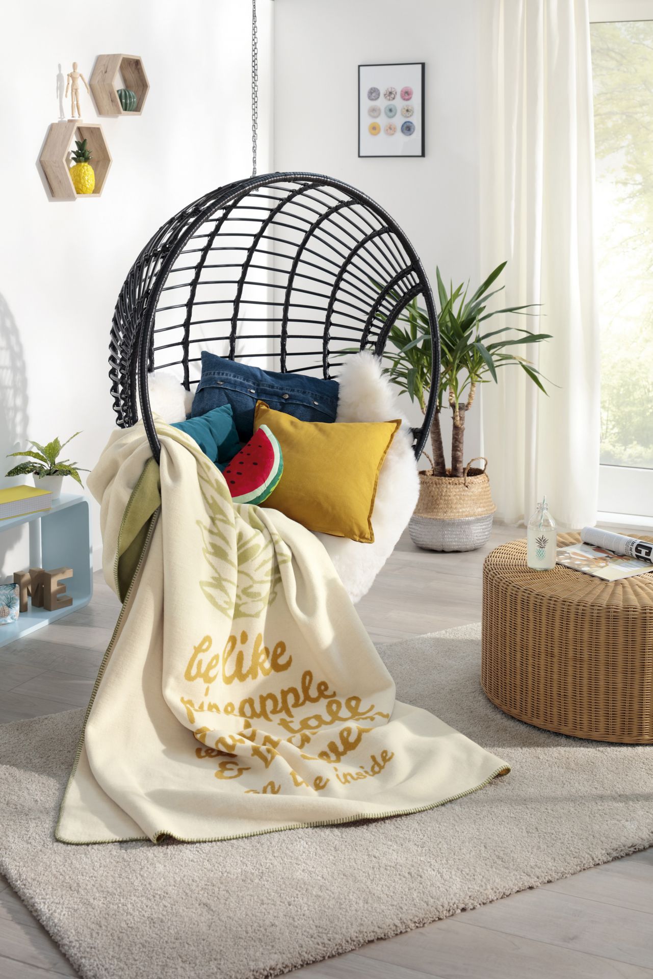 Kuscheldecke „Pineapple“ ist genau das Richtige für Kids und Teens: Mit ihren sommerlichen Farbtönen, dem lustigen Ananas-Motiv und dem coolen Spruch passt sie super in jedes Kinder- und Jugendzimmer. Dazu wurde die Kuscheldecke noch mit einem modernen Häkelsaum eingefasst, der sich farblich perfekt einfügt und die Decke zu etwas Besonderem macht.
